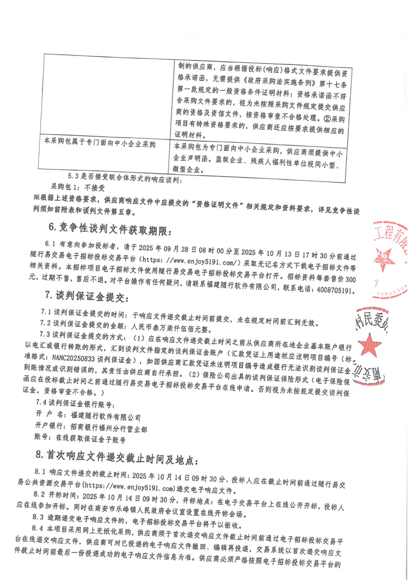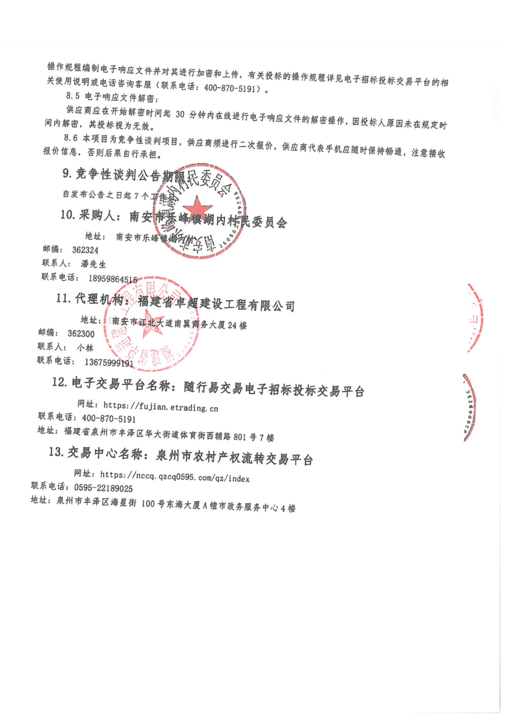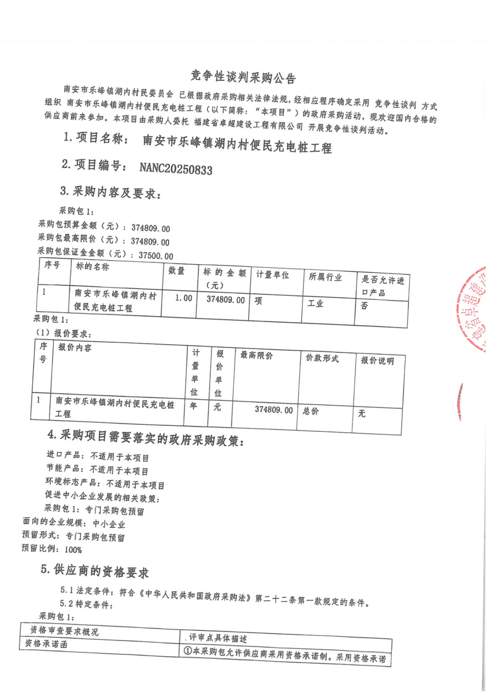 南安市乐峰镇湖内村便民充电桩工程的竞争性谈判采购公告