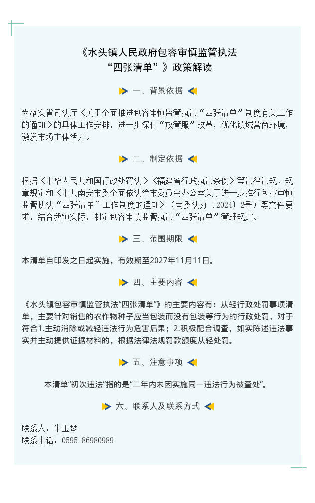 图解:水头镇人民政府关于《水头镇包容审慎监管执法“四张清单”的通知》的政策解读