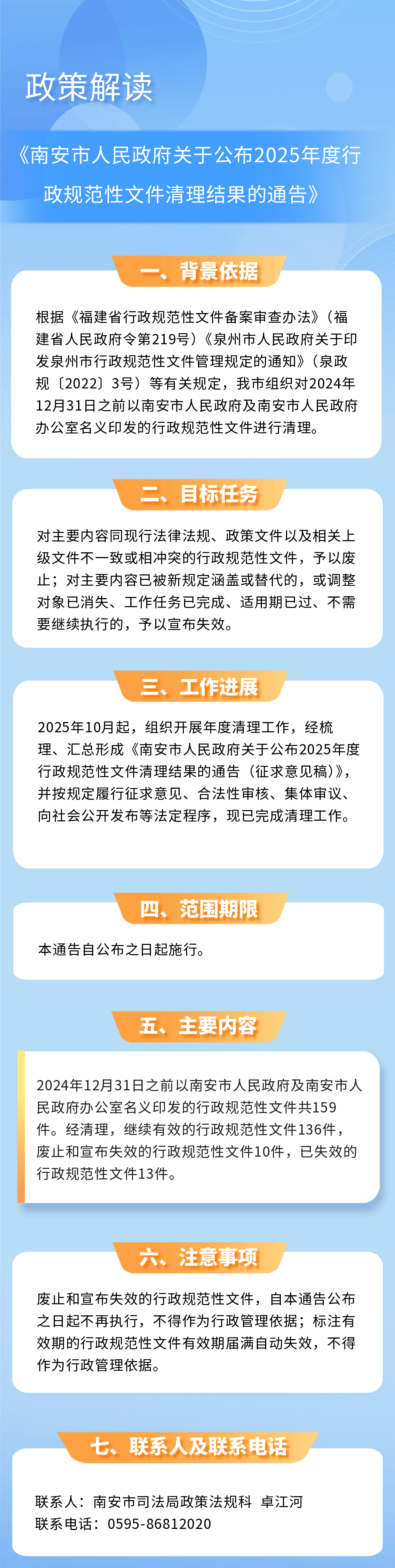 图解:南安市人民政府关于公布2025年度行政规范性文件清理结果的通告