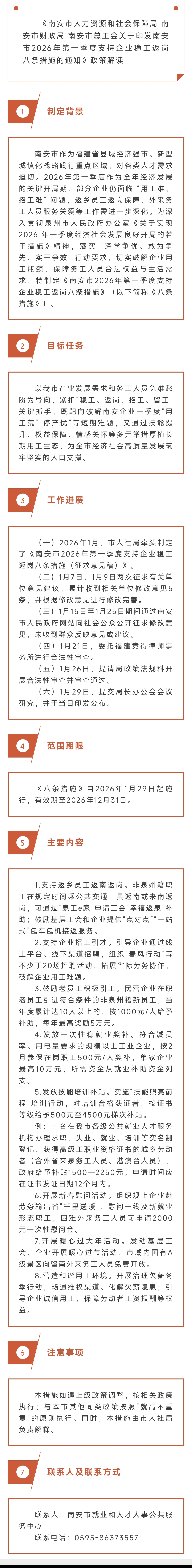 《南安市2026年第一季度支持企业稳工返岗八条措施的通知》图解