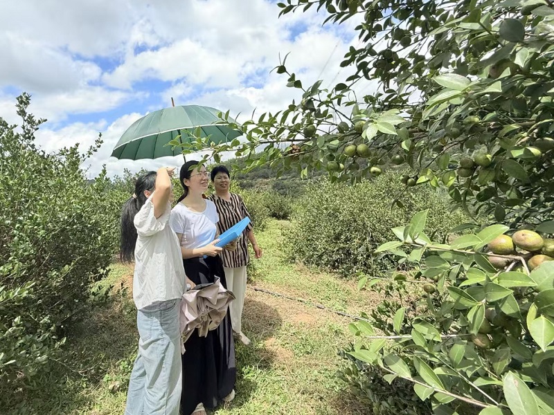 近日,南安市审计局在某乡镇党政领导干部经济责任审计中,重点关注乡村振兴专项资金使用情况和成效。审计人员实地走访千亩油茶基地,通过跟村民的交流了解到该项目的投资情况、种苗种植质量和成活率、供需情况等。村民笑着说:“这片油茶给我们带来了不少收入,我们产的茶油都供不应求呢。”此次审计发现了乡村振兴资金补助分配不合理、发放不规范等问题,审计人员提出针对性整改建议,推动问题及时整改,助力乡村振兴专项资金落到实处。在审计护航下,让专项资金使用更加规范、更有成效,让油茶香飘满田间,酿成农民心中最甘甜的丰收滋味。图为审计人员现场查看油茶种植情况。