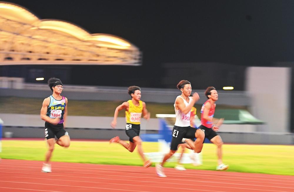 本届市运会共设置了20个大项279个小项,吸引了3000余名体育健儿参加。图为男子公开组100米决赛现场。
