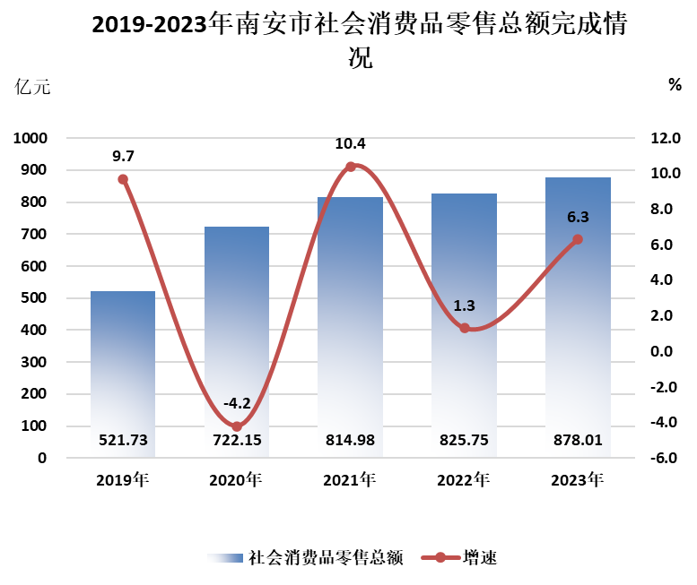 全年社会消费品零售总额878.01亿元,比上年增长6.3%。限额以上社会消费品零售额完成146.06亿元,比上年增长8.5%。其中:文化办公用品类零售额增长20.2%;家用电器和音像器材类增长38.7%;建筑及装潢材料类增长3.9%;粮油和食品类增长21.4%;饮料类增长117.8%;烟酒类增长24.5%;服装、鞋帽、针纺织品类增长25.1%;汽车类增长2.7%;石油及制品类增长32.8%;体育娱乐用品类增长384.8%。