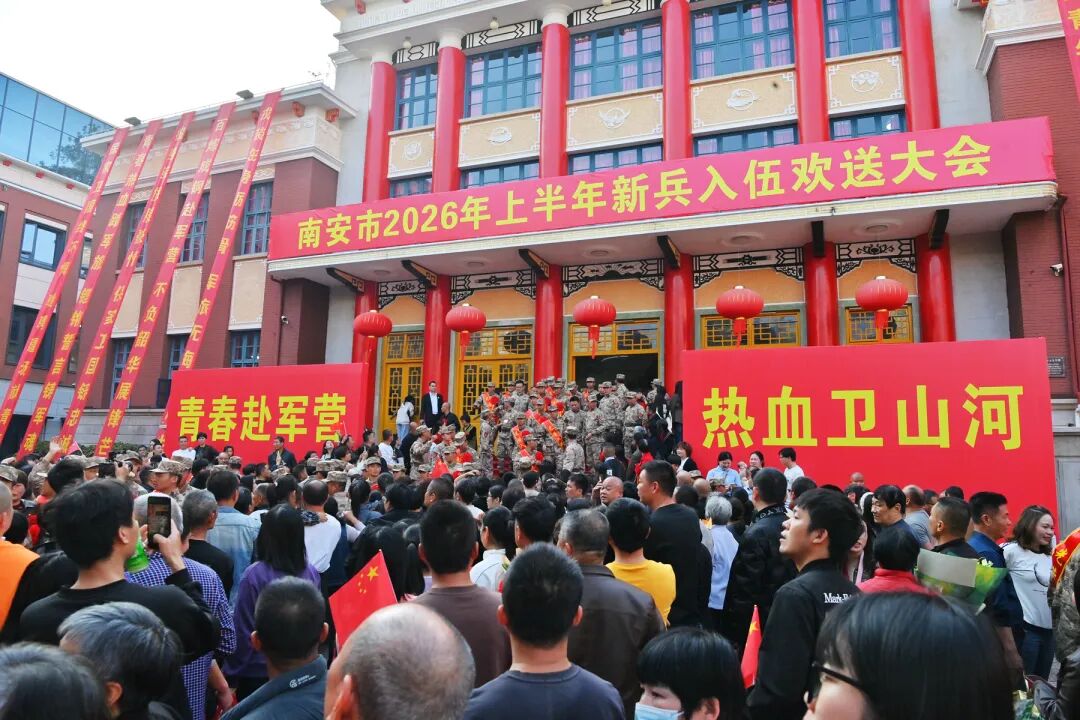3月18日,南安市2026年上半年“戎耀武荣”新兵入伍欢送会举行,为即将奔赴军营的174名新兵送行。市领导林添盛、陈志慧、邵佳出席大会。