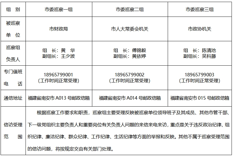 十四届南安市委第八轮第一批巡察公告
