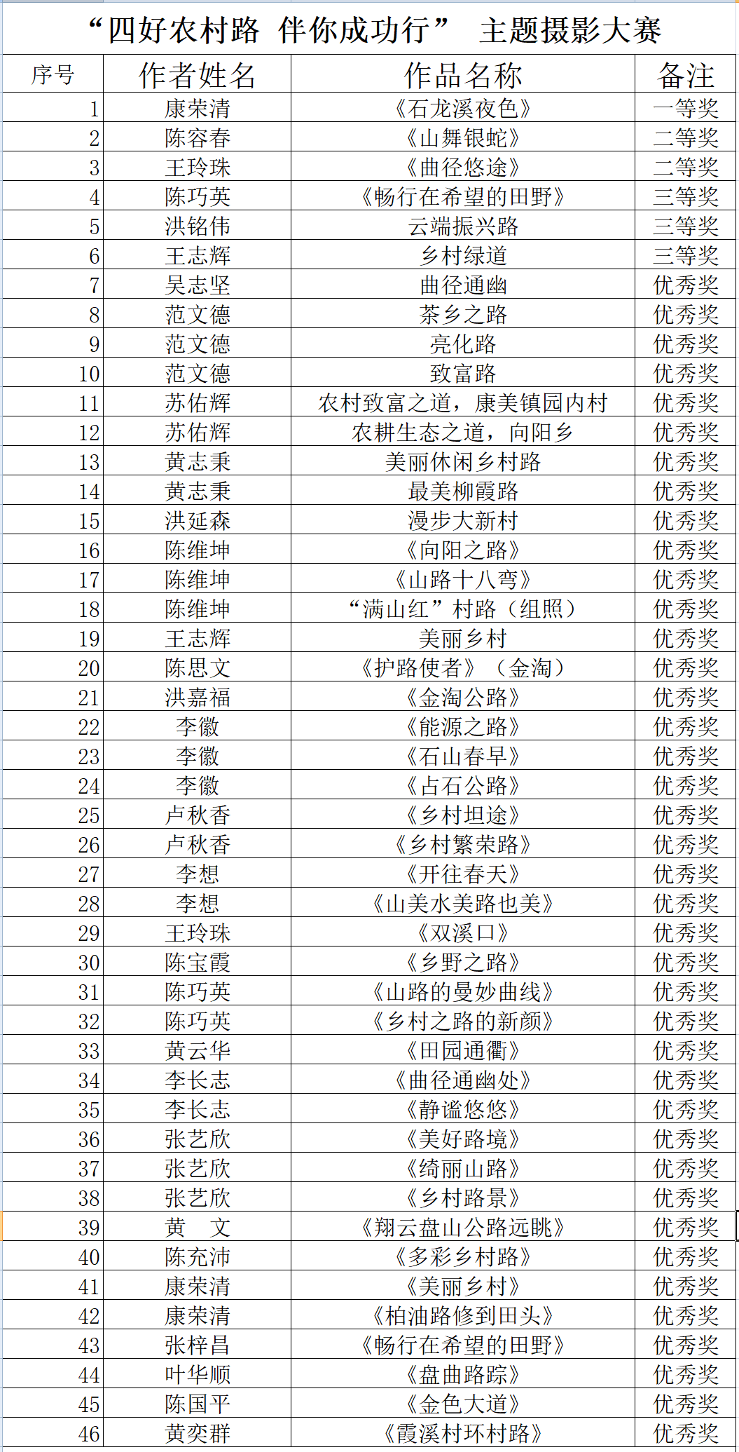 获奖名单