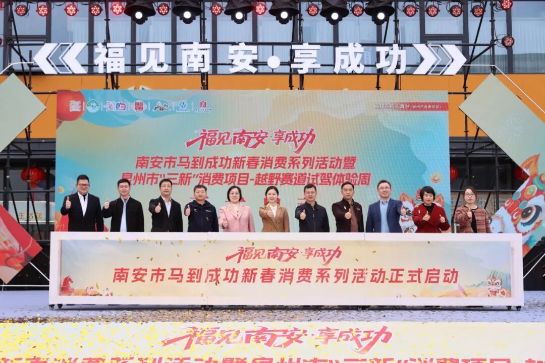 2月1日,“福见南安·享成功”马到成功新春消费系列活动暨泉州市“三新”消费项目-越野赛道试驾体验周启动仪式在泉州市新能源汽贸城(南安霞美)星城广场举行。南安市领导林少青、邱雪亮出席活动。记者从启动仪式上获悉,本届促消费活动将持续至3月底,围绕“吃、住、行、娱、购、展”六大板块,推出“美食南安、安居南安、行游南安、乐购南安、展销南安、潮玩南安”六大主题促消费活动,超500家企业共同参与,政企共同让利优惠超5000万元,南安市总工会同步发放1000万元专项消费券。本届活动也是南安市落实各级促消费决策部署、推进“三新”消费试点、建设区域性消费中心的关键举措。