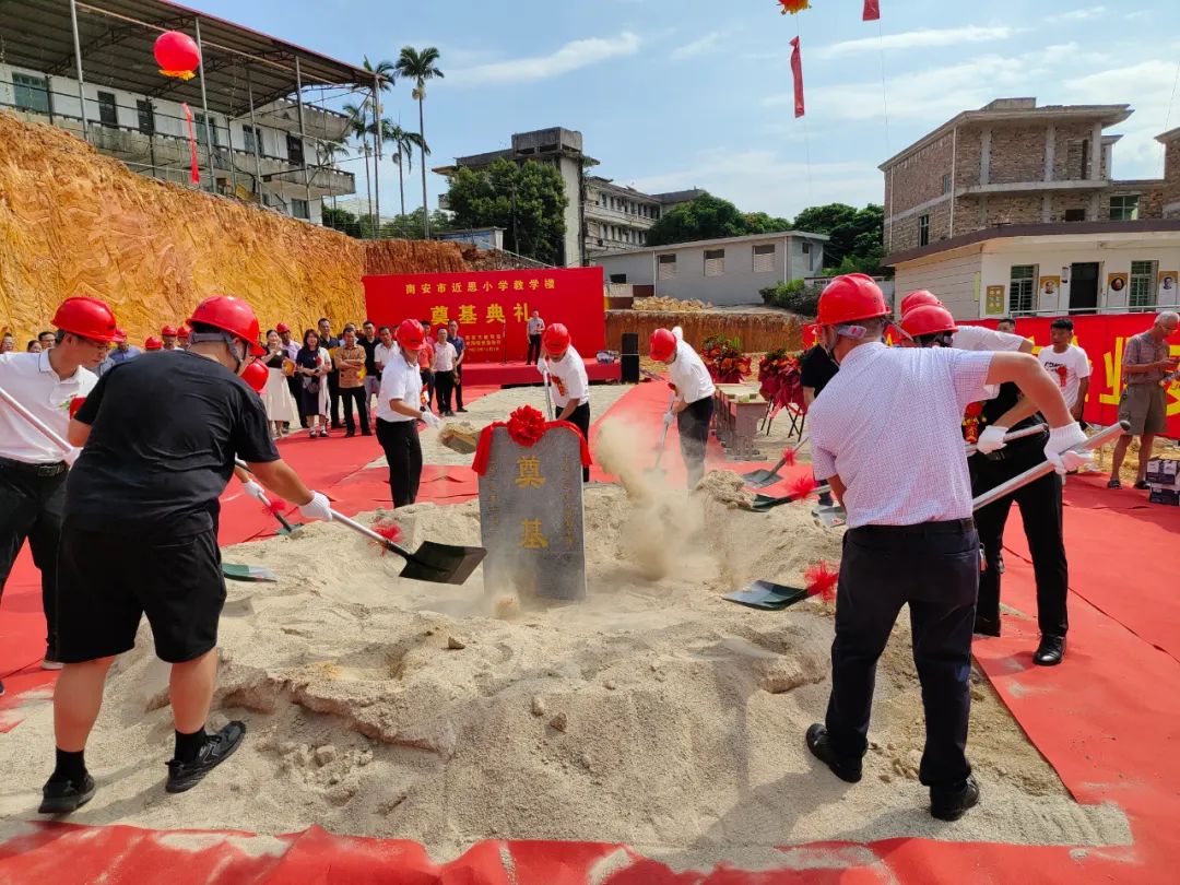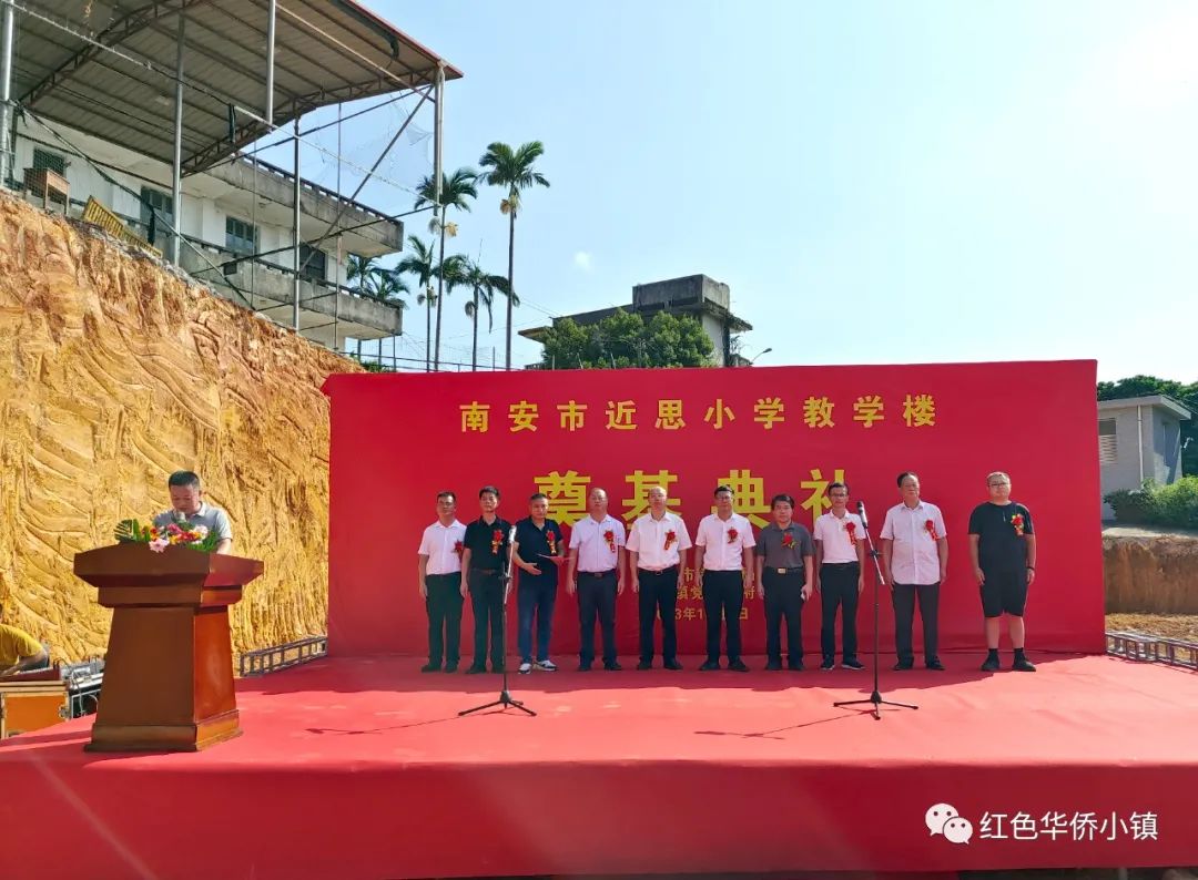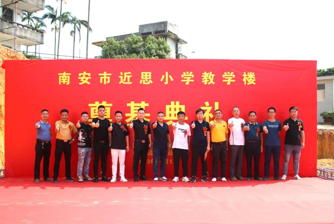 10月1日,南安市近思小学教学楼开工奠基仪式在金淘镇举行,福建省汽车工业集团有限公司总经理谢思瑜、金淘镇党委书记黄俊加、南安市教育局副局长陈心宁、南安政务服务中心副主任李梓明、南安发改局审批科长尤旗芊、镇人大主席李志明、镇政府副镇长林志成、东门村党总支书记谢伯思、近思小学校董会董事长谢金生、近思小学校董会前任董事长谢福林、近思小学校长李伟龙以及金淘镇在家人大代表、村书记、中小学校长、幼儿园园长等参加奠基典礼。