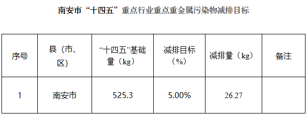 附件:1.南安市“十四五”重点行业重点重金属污染物减排目标