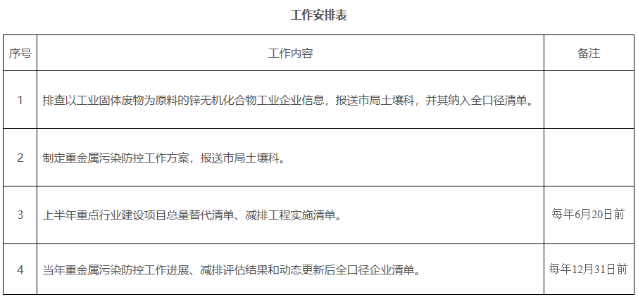 1.完善全口径清单动态调整机制。全面排查以工业固体废物为原料的锌无机化合物工业企业信息,并将结果报市局土壤科,将其纳入全口径涉重金属重点行业企业清单(以下简称全口径清单);梳理排查以重点行业企业为主的工业园区(集中区),建立涉重金属工业园区(集中区)清单;及时增补新、改、扩建企业信息和漏报企业信息,动态更新全口径清单。上报省生态环境厅并每年年底前在厅官网公布更新全口径清单,接受社会监督。要依法将重点行业企业纳入重点排污单位名录,严格涉重金属行业企业大气、水污染物排放管控。