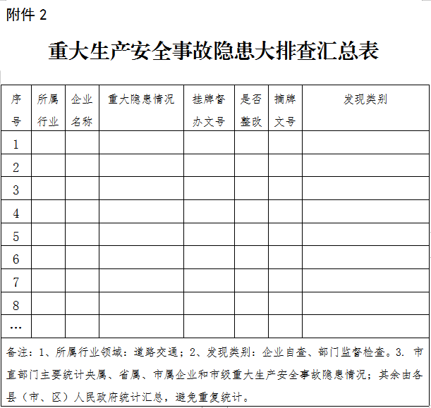 1、分管领导牵头负责各自职责范围内的安全工作,开展行业领域安全检查。相关单位要采取切实措施认真开展道路领域安全检查,督促辖区内企业填写企业安全生产大排查大整治活动承诺书(见附件1),按时上报重大生产安全事故隐患大排查汇总表(见附件2),于1月20日内报乡道安办。